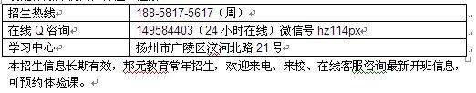 本招生信息长期有效,邦元教育常年招生,欢迎来电、来校、在线客服咨询最新开班信息,可预约体验课小 百 姓 网。面向扬州市邗江区、广陵区、江都区等周边地区招生